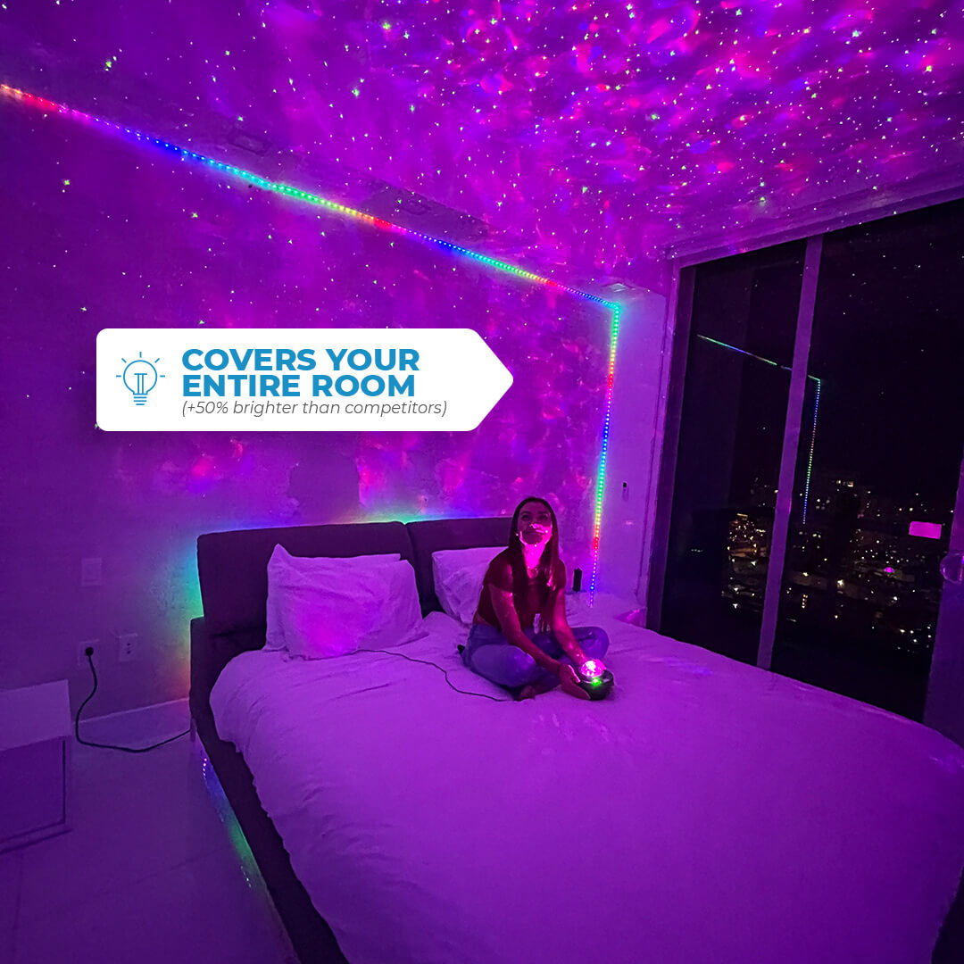 Transform any room into your personal planetarium with our Galaxy Star Projector.Β Choose from over 21 light modes, or pair your Bluetooth device to its built-in speaker with volume control & enjoy your favorite tunes paired with 500+ brilliant stars.