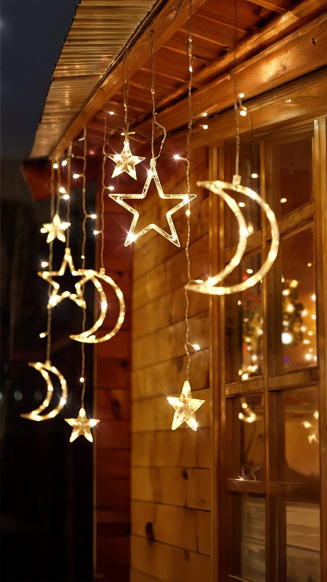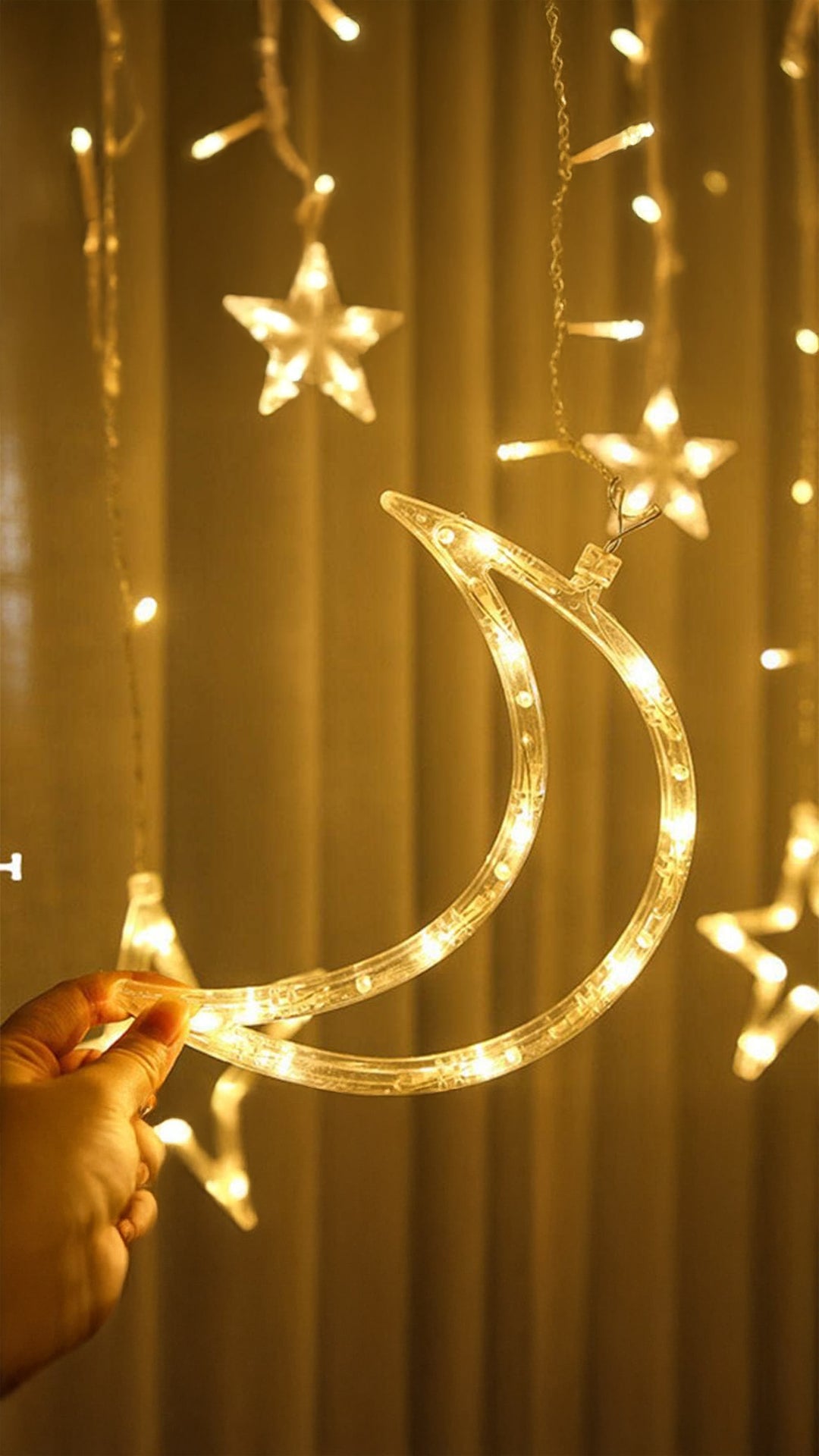 Star & Moon Curtain Lights – Perfect for Ramadan, Eid & Weddings! 🌙✨